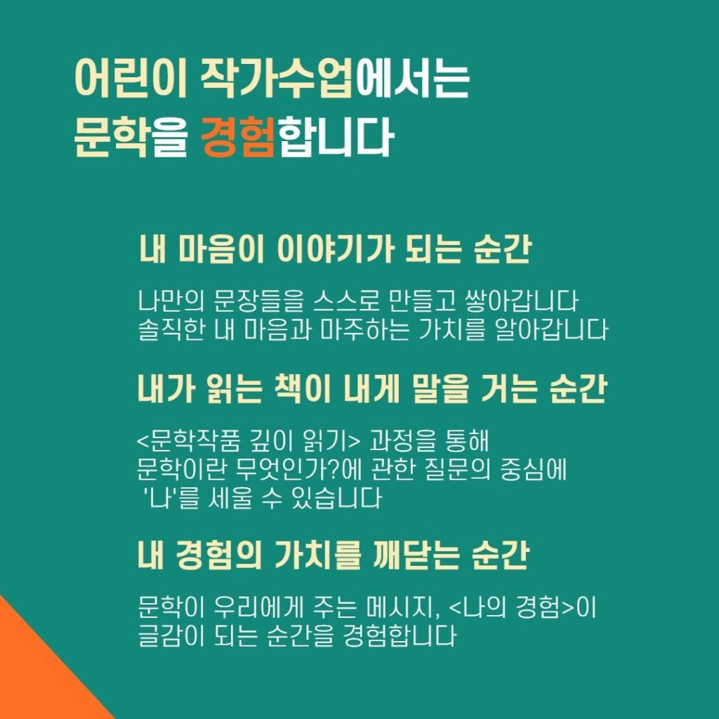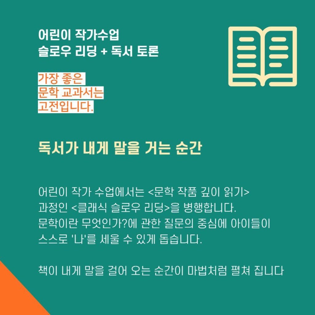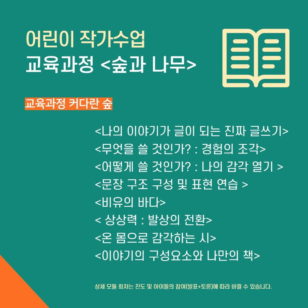 내 아이가 모국어 (한국어)로 된 책을 어떻게 ‘잘’ 읽을 수 있을까? 로 시작한 고민들과 하나씩 알아가게 된 경험적 교수방법-지도 방법을 소개합니다. 현직 작가가 제공하는 어린이 작가되기 글쓰기 교육<어린이 작가수업> 과정과 그림책을 바탕으로 한 문학관점 키우기 <내 친구, 그림책>과정을 운영합니다. 넘쳐나는 독서법 홍수 속에 실질적이고 유용한 독서 지도, 독서 방법, 독서 정보에 대한 이야기를 나눕니다. 더불어 우리 엄마들이 아이들과 쉽고 간단하게 접근 할 수 있는 “상상독후활동” 아이디어를 소개합니다 아이의 삶에 긍정적인 영향을 줄 독서 코칭을 시작합니다. 엄마와 아이가 함께 책의 바다에서 삶의 가장 귀한 보물들을 발견할 수 있기를 바랍니다