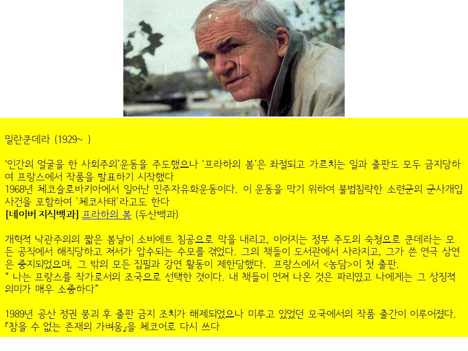 대학시절, 쿤데라의 다른 소설, <농담>을 읽고 ‘다른 언어’에 대한 타의적 이해가 있을 수 있겠구나, 싶었다.