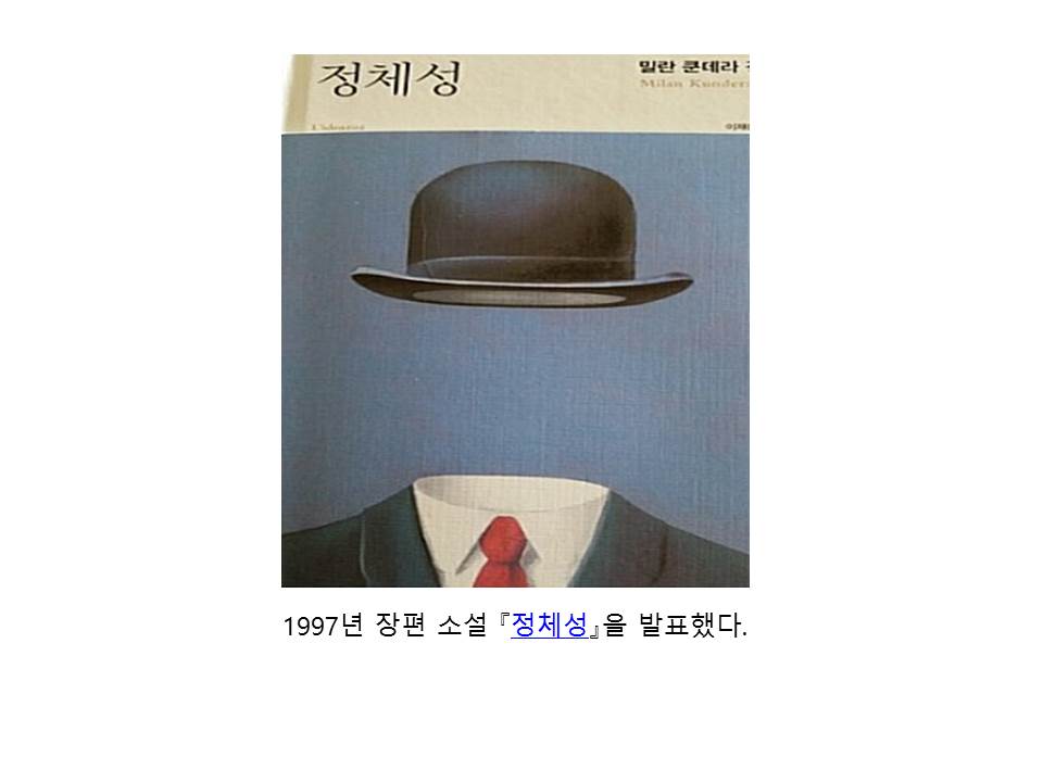 체코의 대표작가 밀란쿤데라는 과거, 도스토옙스키, 톨스토이라는 거대한 두 거장의 러시아문학으로 대표되던 정체성에 대한 물음, 슬라브문학의 정신의 맥을 명백히 이어간다. 그래서 믿음과 역사가 있던 과거를 가지고 불안하고 점쳐지지 않는 미래를 사는 현대 우리들에게 큰 공감을 사고, 많은 사랑을 받지 않나 싶다. 슬라브 문학의 근본 질문, 다시 말해 <정체성>뿐만 아니라 쿤데라의 소설들에서-<참을 수 없는 존재의 가벼움에서도 마찬가지이다>- 작가가 핵심 테제로 삼고 있는 “나는 누구인가?” 의 질문은 우리들에게 어떤 자아로 타인을 대하고 있는가?의 문제로 확장시킬 수 있으며 궁극적으로 어떤 자아, 즉 어떤 정체성으로 작품를 읽을 것인가?에 대한 질문으로 귀결된다.