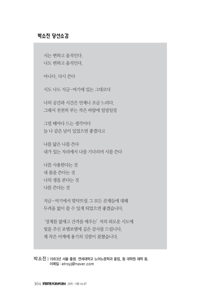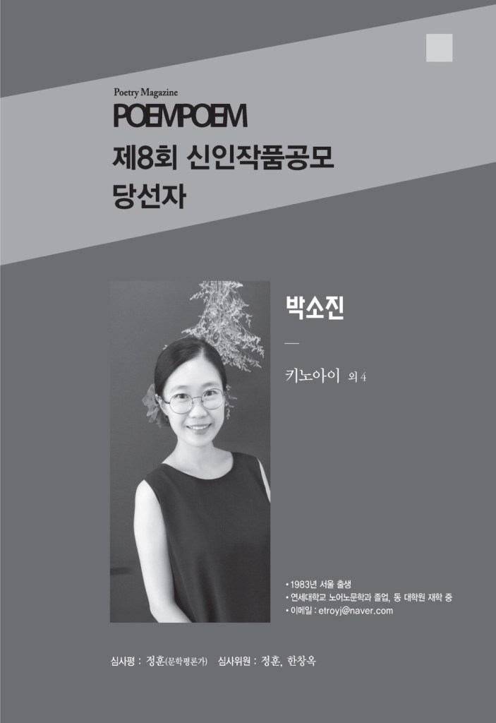 신인상 키노아이 외 4편 Posted on 10월 11, 201510월 11, 2015 by atelier-literature http://etroyj.blog.me/220476377966 이 글 공유하기: 페이스북에 공유하려면 클릭하세요. (새 창에서 열림) Facebook 클릭하여 친구에게 이메일로 링크 보내기 (새 창에서 열림) 전자우편 좋아하기 가져오는 중... 글쓴이: atelier-literature atelier-literature의 모든 글 보기