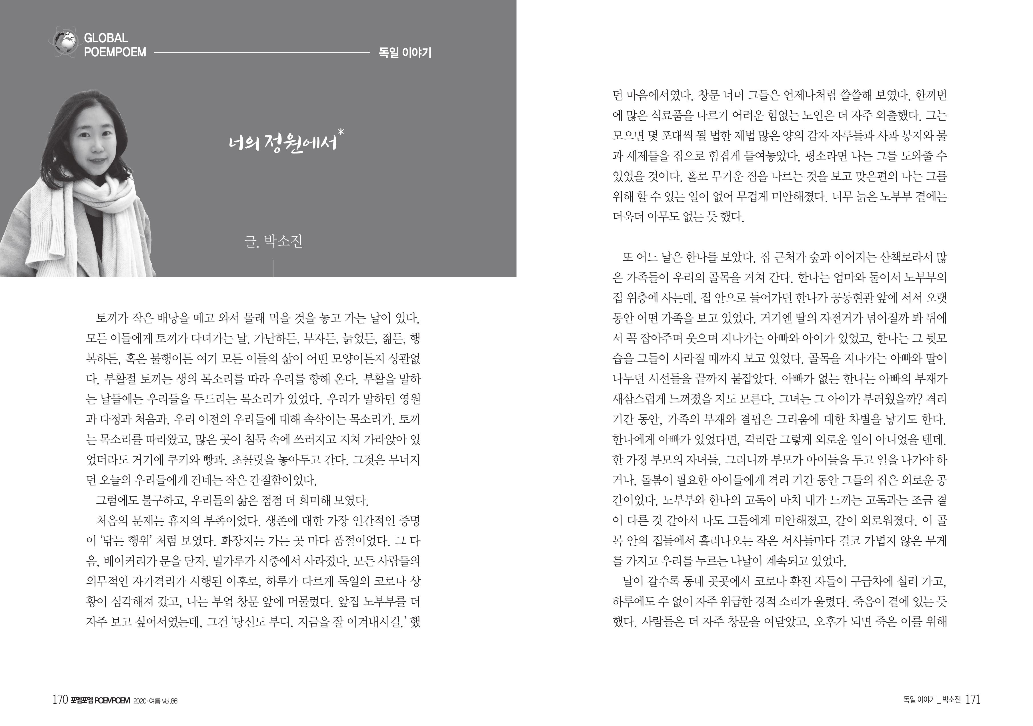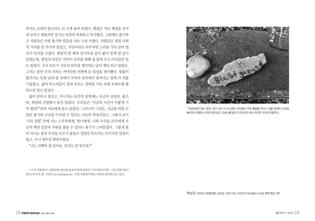 POEMPOEM, Summer. 2020 Posted on 6월 26, 2020 by atelier-literature 이 글 공유하기: 페이스북에 공유하려면 클릭하세요. (새 창에서 열림) Facebook 클릭하여 친구에게 이메일로 링크 보내기 (새 창에서 열림) 전자우편 좋아하기 가져오는 중... 글쓴이: atelier-literature atelier-literature의 모든 글 보기