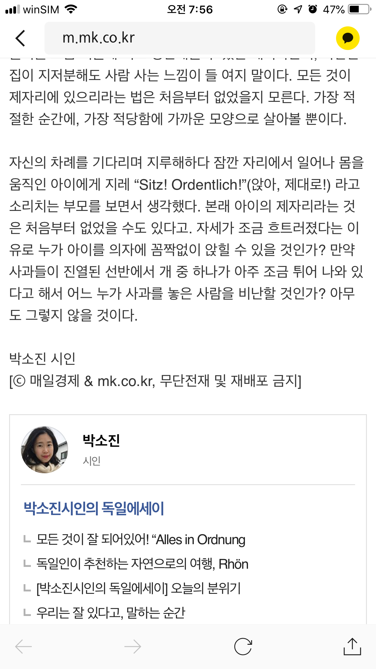 매일경제 우버인사이트 8월 칼럼 Posted on 8월 15, 2020 by atelier-literature http://me2.do/xncoDnah 매경 우버인사이트 [박소진 시인의 독일에세이] 이 글 공유하기: 페이스북에 공유하려면 클릭하세요. (새 창에서 열림) Facebook 클릭하여 친구에게 이메일로 링크 보내기 (새 창에서 열림) 전자우편 좋아하기 가져오는 중... 글쓴이: atelier-literature atelier-literature의 모든 글 보기