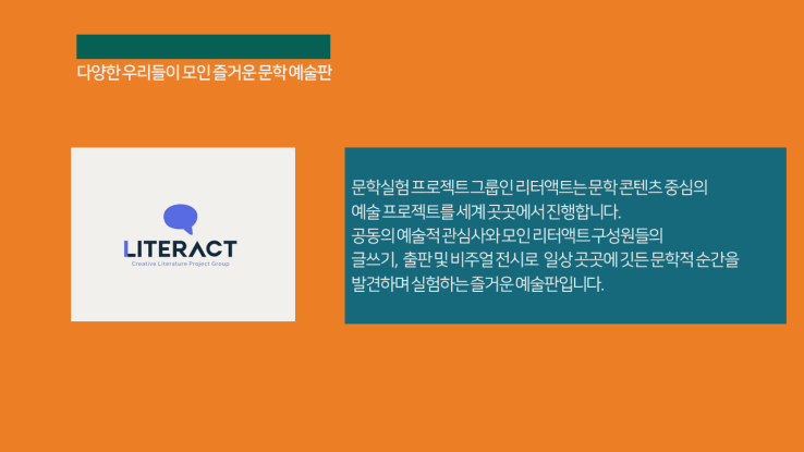 경계 없는 문학의 장을 추구합니다. 우리는 모두 각자가 하고 싶던 말을 합니다. 늘 하고픈 말이 있던 우리들을 위한 글로벌 문학프로젝트 그룹 Literact 의 2020-2021년 프로젝트 My Fresh Banana
